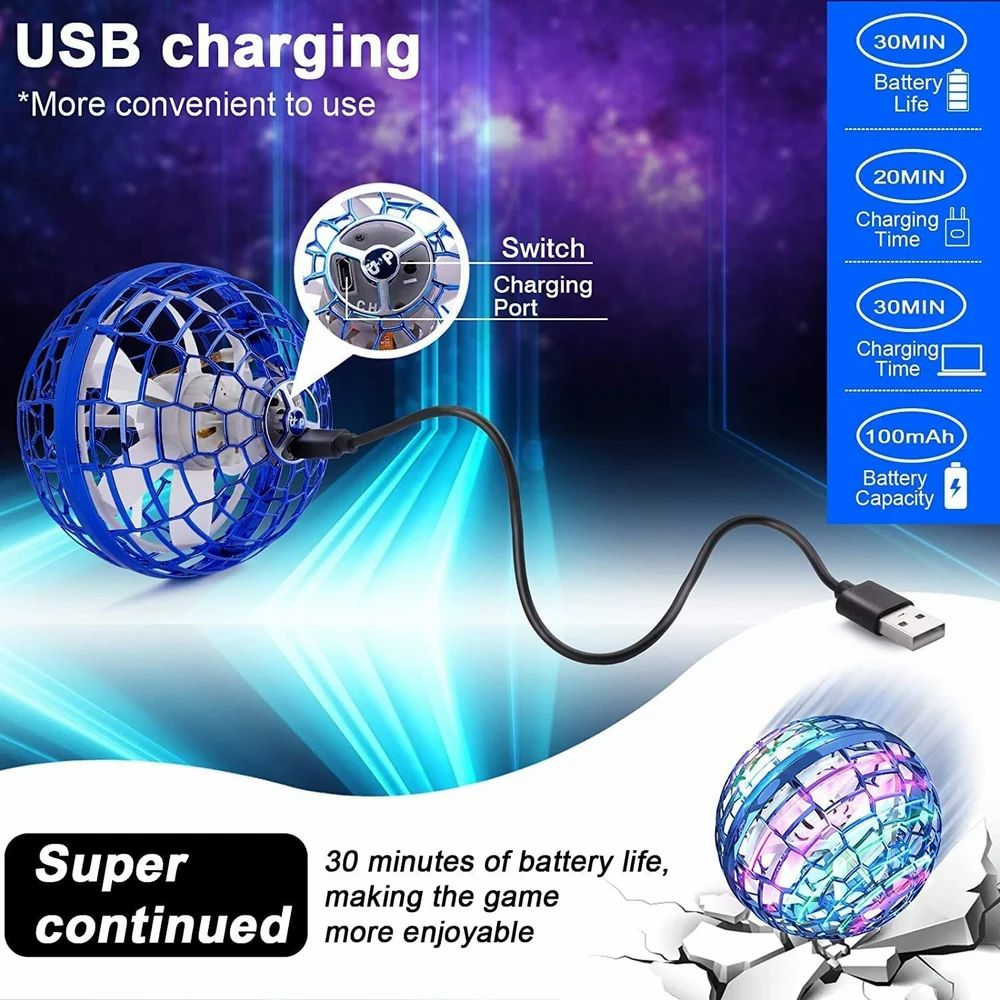 ?Safety?Sealed outer housing. It is durable and can withstand impact. You are encouraged to pay more attention when recharge it due to its special and safe design,Good toys ?Magic?Who said that there is no such thing as magic? Follow the floating sphere with your hands, use your skills to move the sphere, as it floats in mid air ?Cool?It is like controlling the power of a meteor through the fucking sky! ?Explore?Unlock and explore endless possibilities. Now it's time for you to present your technology ?Gift?Surprise someone with this unique gift!